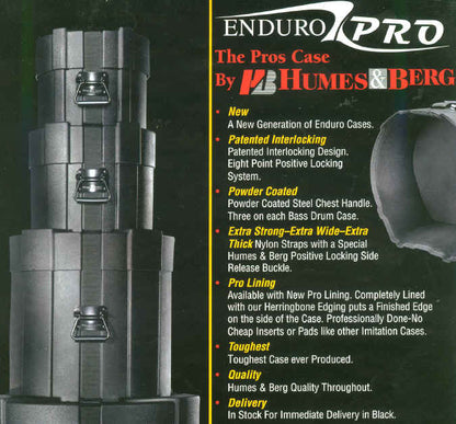 We have used Humes and Berg Vulcanized Fibre cases for years. We have bought them new and used, round ones and square ones. Now these are a step up to the big time! The Enduro Pro simply compliments their case line to give every professional drummer, musician, school and community band and orchestra the ultimate protection for transporting their instruments. Like all Humes and Berg products they have virtually unbreakable handles and straps, and are made with Humes and Berg quality throughout.